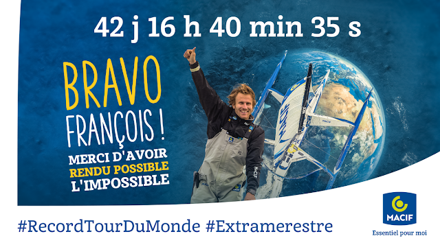 Yves le Blevec tentava bater o recorde da volta ao mundo no sentido Este - Oeste ou seja contra os ventos e correntes predominantes...